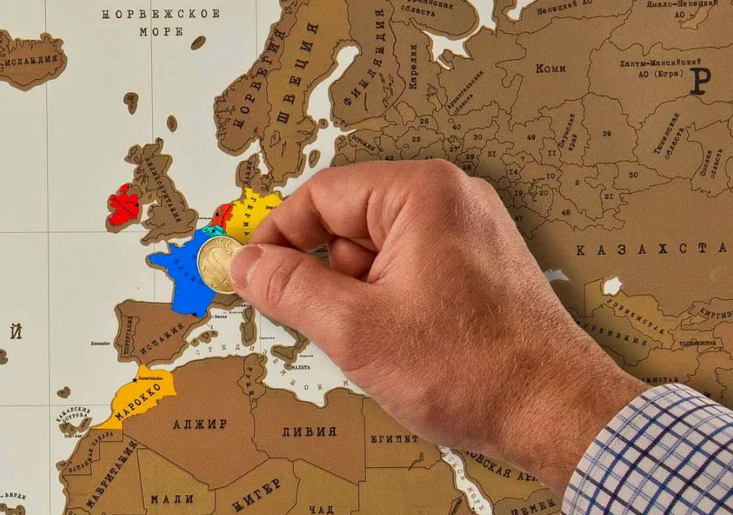 Подарите им карту путешествий со скретч-покрытием, чтобы они могли отмечать посещенные страны.