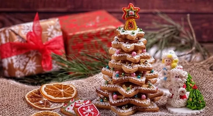 Домашняя выпечка, выполненная в новогоднем стиле, украсит праздничный стол.