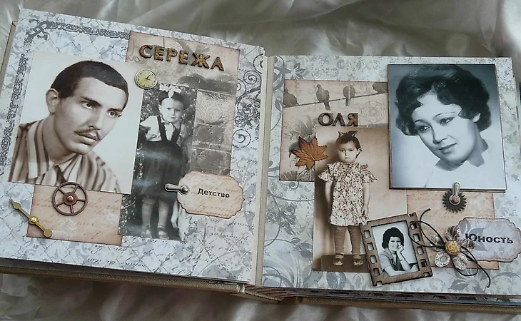 Создание альбома с памятными фотографиями и записями станет прекрасным подарком для родителей.