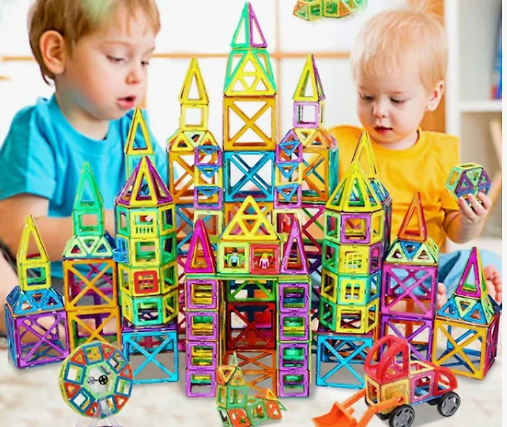 Детям в таком возрасте интересно ставить предметы друг на дружку и собирать их воедино. В таком наборе преимущественно крупные детали и они магнитятся, чтобы проще было то-то построить.