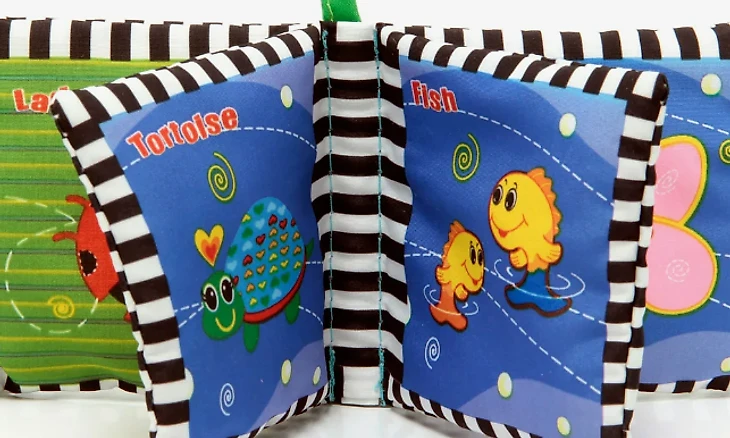 Малышу от полугодовалого возраста можно подарить книжку. И желательно с непромокаемыми и не рвущимися страницами, чтобы ребенок ее не разгрыз и не залил чем-нибудь. Как вариант, мягкую тканевую книжку с изображениями растений и животных.