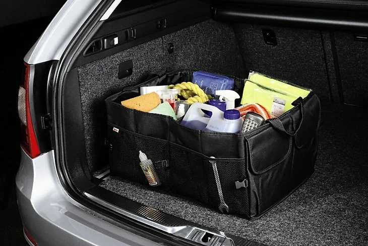 Обычно в багажнике находится очень много мелочей, начиная с аптечки и заканчивая мелкими инструментами. При движении они зачастую просто катаются из стороны в сторону и издают неприятные звуки. Все это можно поместить в органайзер, который не займет много пространства. Очень удобно и практично.