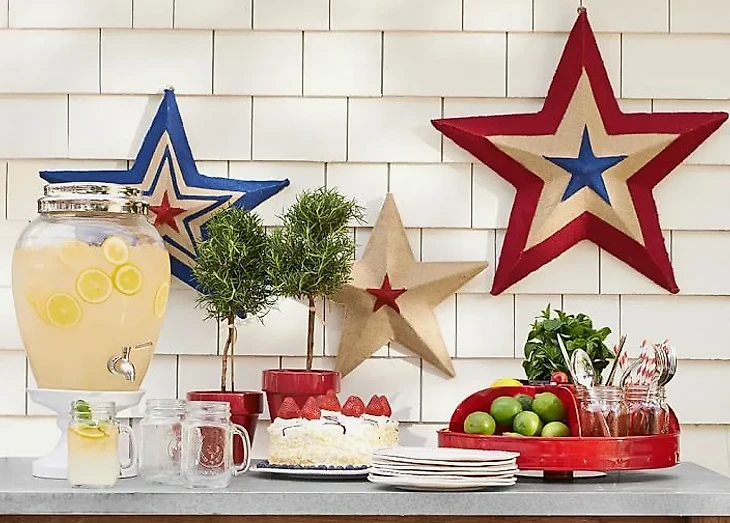 Если у вас есть место, поставьте рядом с дверью небольшой столик, на который положите сладости, угощения, легкие закуски и напитки для гостей. Украсьте флагом, лампочками, воздушными шарами — это добавит стиля и уюта.