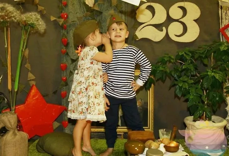 Фотозона с тематическим оформлением, в которой гости смогут сделать веселые фотографии. Подготовьте реквизит – фуражки, пилотки, игрушечная военная техника. Оформите фон в военной тематике — повесьте плакаты с изображениями техники, задействуйте камуфляжные ткани. Это станет отличным местом для создания памятных снимков!