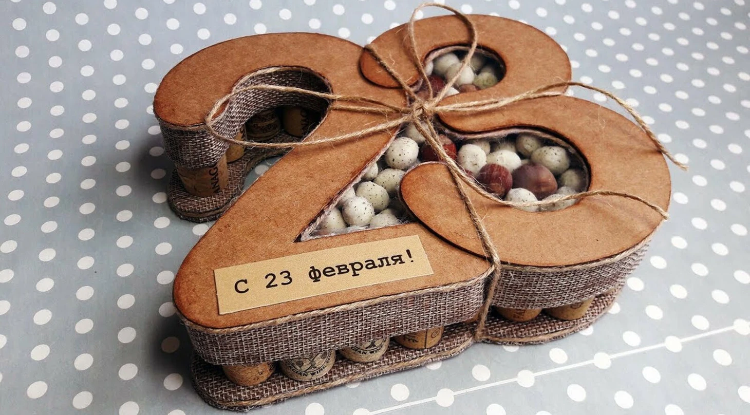 В большей степени подойдут для детей. Лучше если подарок не будет выглядеть банально. Если нет символики 23 февраля, то сделайте сверху обертку самостоятельно. Очень просто можно сделать надпись и изобразить георгиевскую ленту даже без хороших навыков рисования. То же самое касается упаковок конфет.