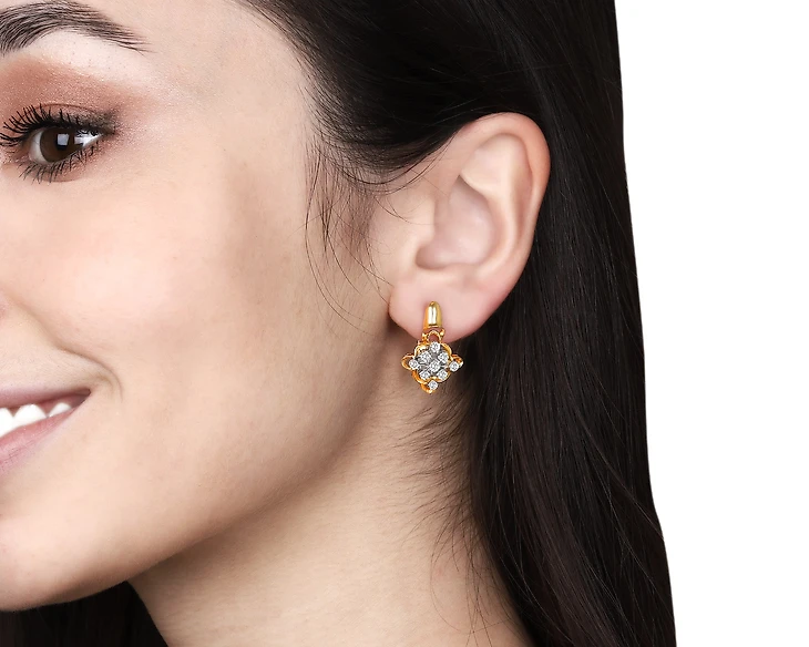 Геометричные серьги с золотыми вставками — минималистичный стиль, который отлично смотрится как с платьем, так и с костюмом.