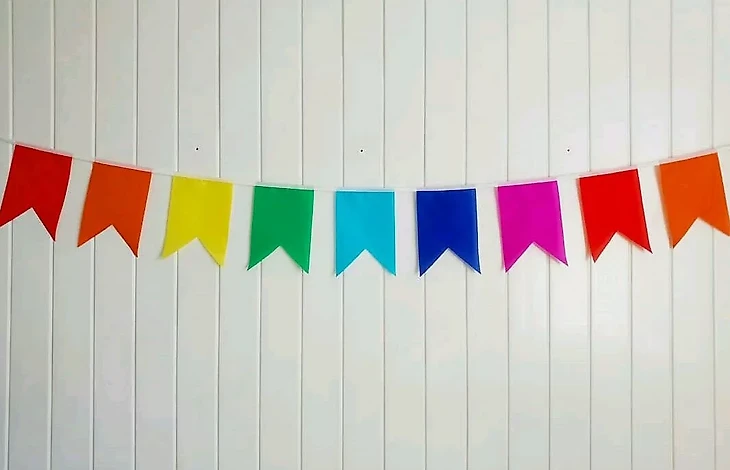 Флажки или гирлянды. Из цветной бумаги вырежьте флажки. Можно выбрать разные цвета или использовать только один. На флажках вы сможете написать патриотические лозунги. Для создания гирлянды приклейте флажки на джутовую веревку или шпагат.