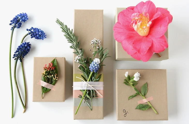Декор. Используйте природные материалы для декора упаковки. Например, добавьте маленький букетик из сухоцветов, веточку с зелеными листьями, елочку. Это как вишенка на торте.