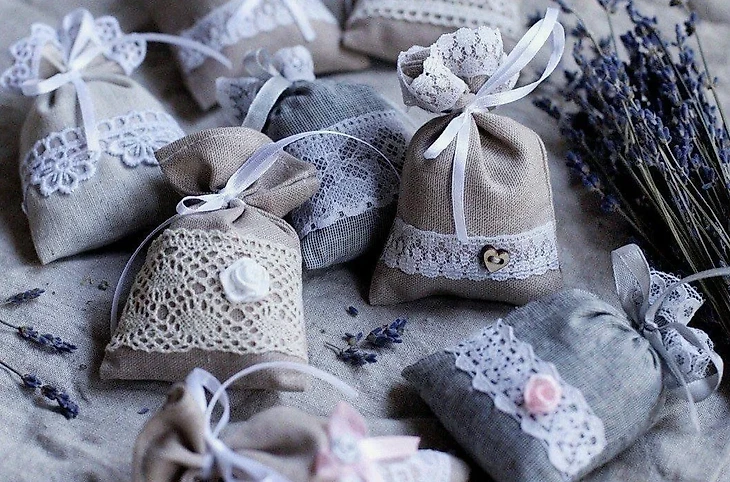 наполните маленькие тканевые мешочки сушеными цветами (лаванда, розмарин, мята);