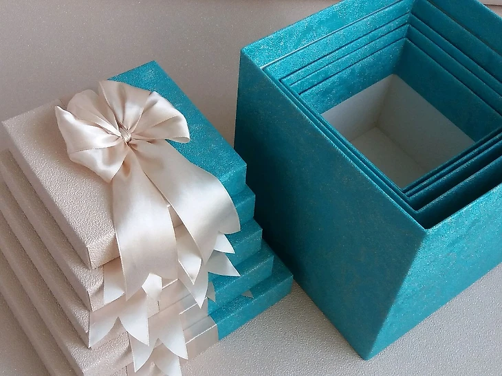 Необычно упаковать подарок можно в несколько одинаковых по расцветке коробок-матрешек, но при этом каждая последующая будет больше по размеру. Тут уже все будет зависеть от того, насколько далеко вы хотите его спрятать. Оптимальным вариантом будет коробочек 5, открывая первые раза 4, эффект неожиданности у подруги точно будет зашкаливать.