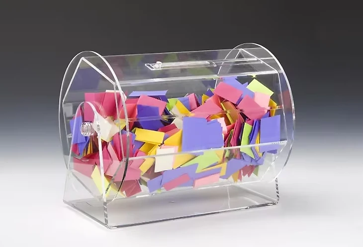 Приклейте листочек с порядковыми номерами всех участников женского коллектива на подарки и сложите их поочередно в укромном месте. Лотерейные билеты можно сделать из цветной бумаги, которые сложить на 2 части и написать внутри номера, совпадающие с тем что указаны на подарках. Для более эффектного проведения лотереи желательно использовать лототрон. Каждый из коллег будет вытаскивать билеты и называть цифру, после чего им нужно сразу же вручать презент под этим номером.
