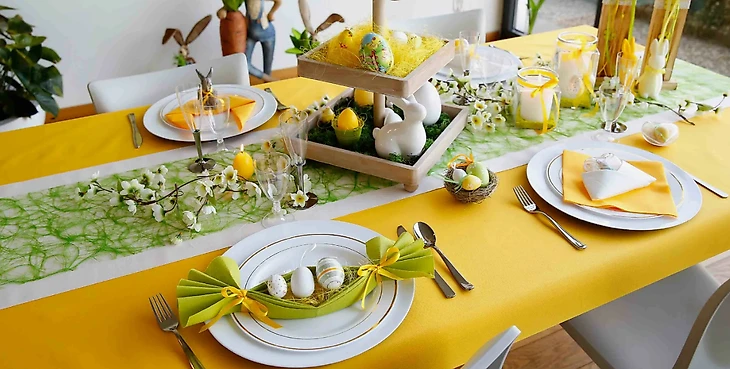 Что касается текстиля, то лучше всего подойдут скатерти пастельных тонов – нежно-розовый, голубой или зеленый. Они создадут атмосферу весны. Добавьте вязаные салфетки — это придаст уют и тепло. Если хотите добавить немного игривости, используйте салфетки с пасхальными мотивами.