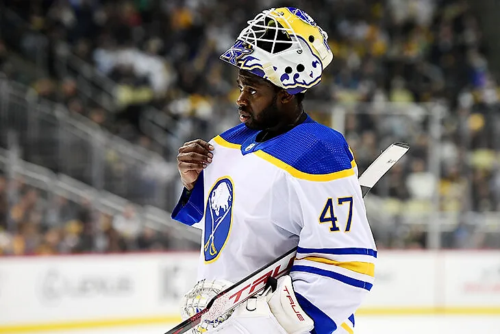 😳 Нереальное спасение в НХЛ: вратарь «Баффало» вытащил шайбу закинутой за спину ловушкой
