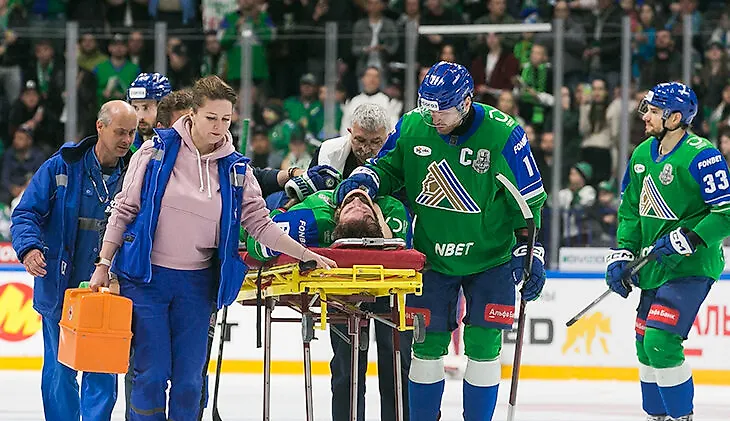 Ужасное столкновение в полуфинале Кубка Гагарина: игрока «Салавата» увезли на носилках