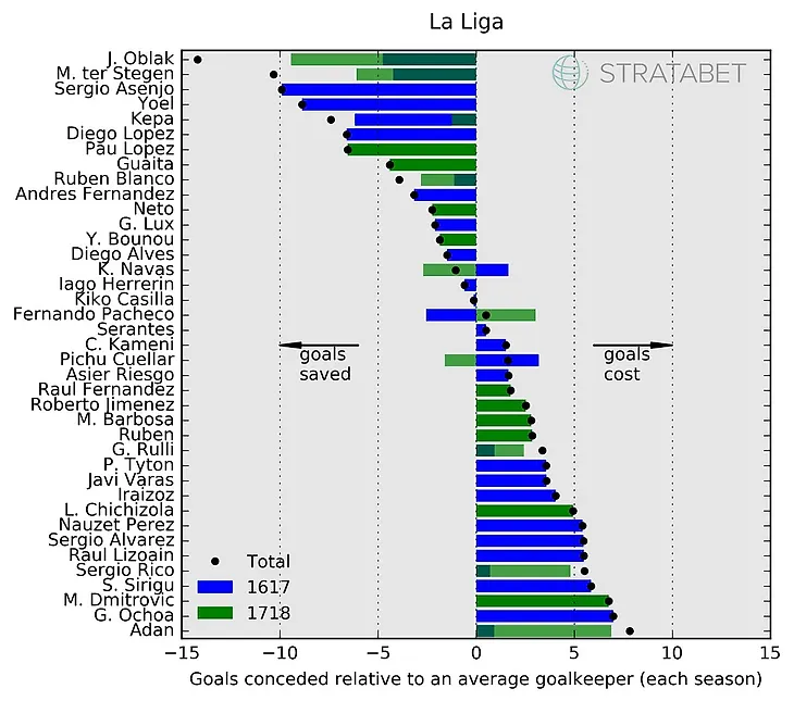 В данном посте будет показано количество мячей, которые вратари Ла Лиги «вытащили» или «привезли»