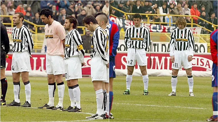 22 февраля 2004 года: Игроки «Ювентуса» отдают дань уважения легендарному Джону Чарльзу, который умер накануне