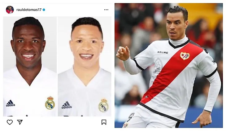 Рауль де Томас, который летом мог перейти в «Реал», выложил фото Винисиуса с белой кожей, но вскоре удалил пост😱😱😱