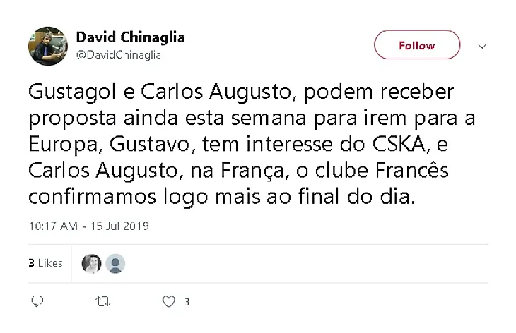 Как сообщает бразильский журналист David Chinaglia, ЦСКА заинтересован в трансфере 25-летнего форварда «Коринтианс» Густаво Энрике по прозвищу «Густагол».