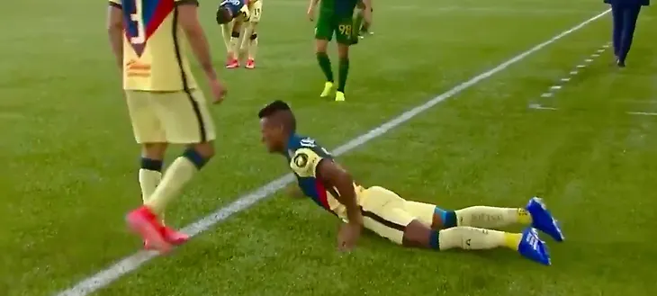 Лучшее затягивание времени в истории: игрок «Америки» упал за пределами поля, но выполз обратно, чтобы судья не продолжил игру