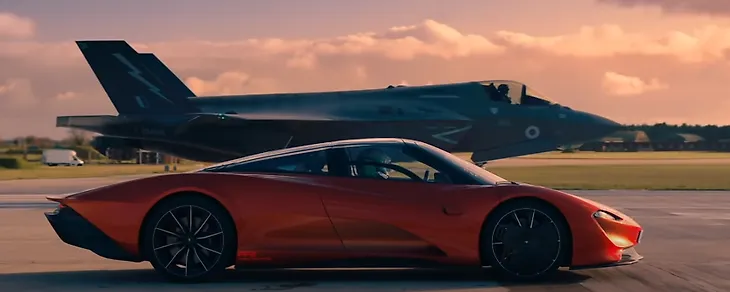 Новейший гиперкар «Макларена» (1035 л.с.!) – против истребителя. Машина билась до последнего, у ролика 2 млн просмотров