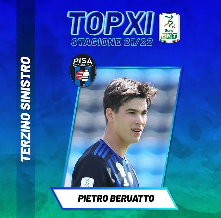 Пьетро Беруатто, левый защитник «Юве», выступающий в «Пизе» на правах аренды, попал в список лучших XI сезона Серии B