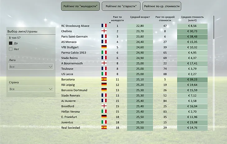 Конструктор рейтингов: вместе анализируем 708 команд Европы по средней стоимости и возрасту