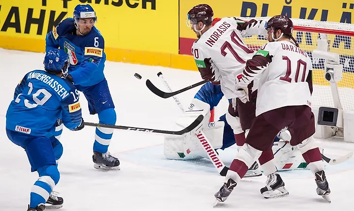 Поражение от Казахстана, трудная победа над Италией сборной Латвии на домашнем Чемпионате Мира
