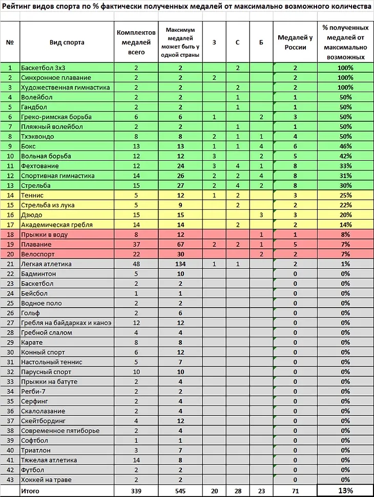 Сейчас, когда олимпиада окончена, интересно посмотреть не только на таблицу с медальным зачетом, но сделать сравнительный анализ по эффективности выступлений нашей сборной в разных видах спорта. Какие данные я взяла: