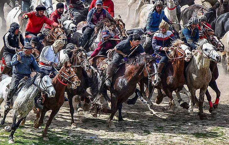 Сотни мужчин на лошадях отбирают друг у друга тушу козла – это очень важный спорт Средней Азии