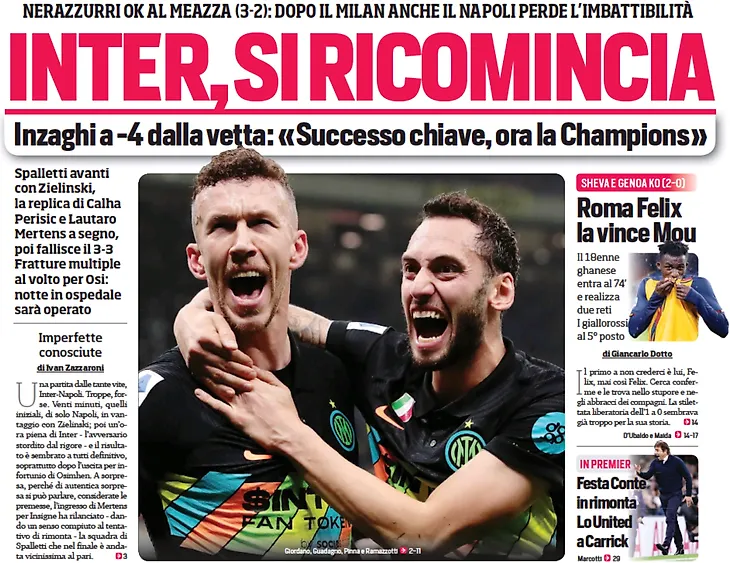 Победа «Интера» над «Наполи», травма Осимхена, поражение «Дженоа» в первом матче Шевченко от «Ромы», а также сегодняшний матч «Торино» с «Удинезе» – в утреннем обзоре заголовков итальянских спортивных изданий в блоге «В гостях у Кальчо».