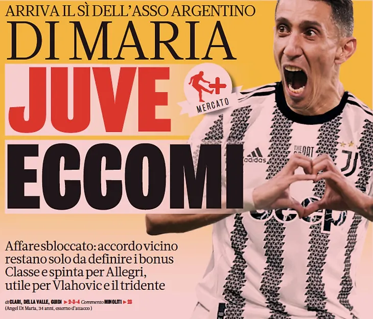 Ди Мария: «Юве», вот и я. Заголовки Gazzetta, TuttoSport и Corriere за 27 июня