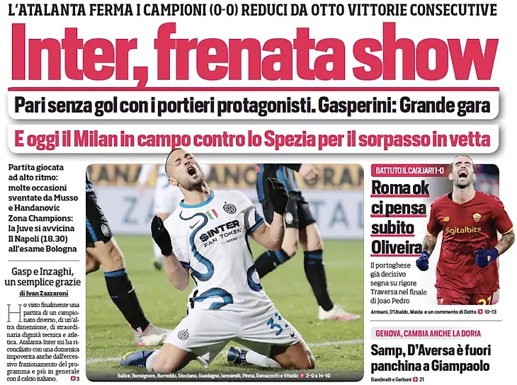 Ничья «Интера» с «Аталантой», победа «Ромы», сегодняшний матч «Милана», а также ситуация с Дибалой – в утреннем обзоре заголовков итальянских спортивных изданий в блоге «В гостях у Кальчо».