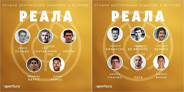👑 Пирри, Рамос, Йерро, Санчис и еще 7 легенд Мадрида. Кто лучший центральный защитник в истории «Реала»? 👍👎
