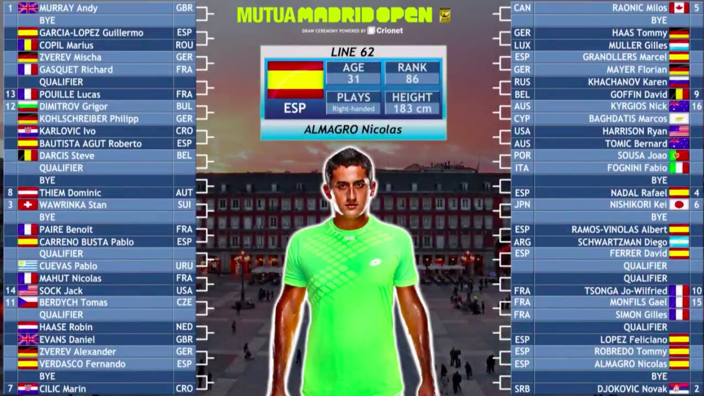 Из игроков Топ-8, которые начнут турнир со второго круга, Энди Маррей (1), Стэн Вавринка (3), Марин Чилич (7) и Доминик Тим (8) попали в верхнюю половину сетки, а Новак Джокович (2), Рафаэль Надаль (4), Милош Раонич (5) и Кеи Нисикори (6) – в нижнюю.