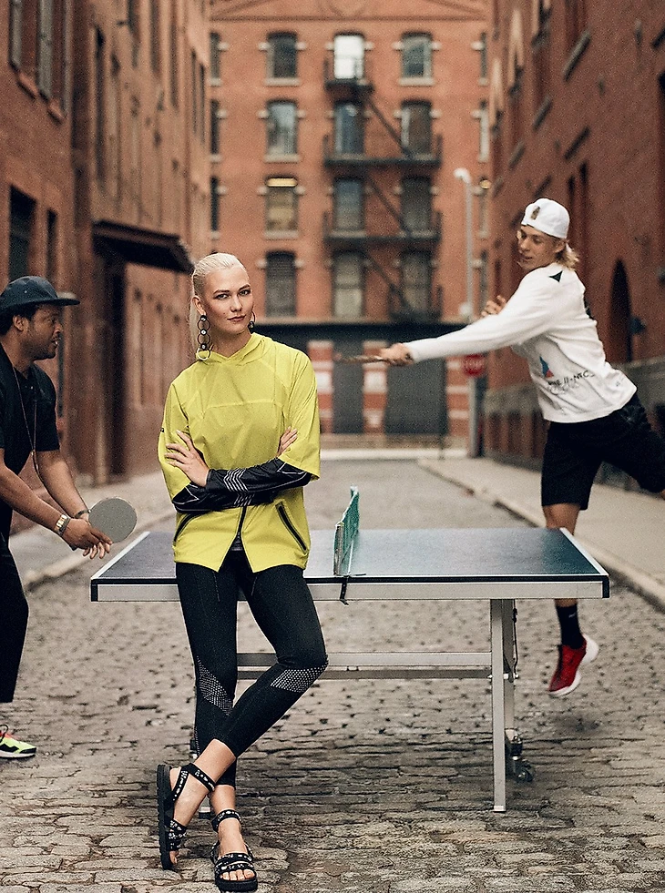 18-летний канадец появился на снимке с моделью Карли Клосс в роли игрока в настольный теннис в материале, посвященном дизайнерам-финалистам ежегодных наград Совета модельеров Америки.