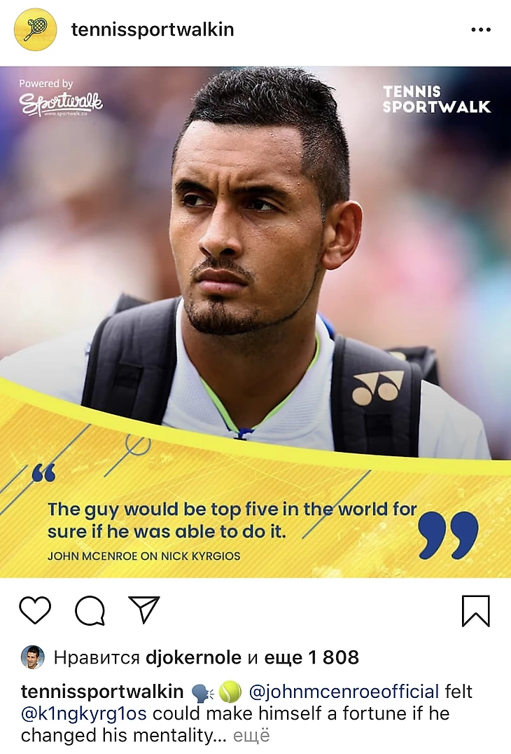 Макинрой сказал, что если Кириос будет выкладываться, то попадет в топ-5. Джокович лайкнул