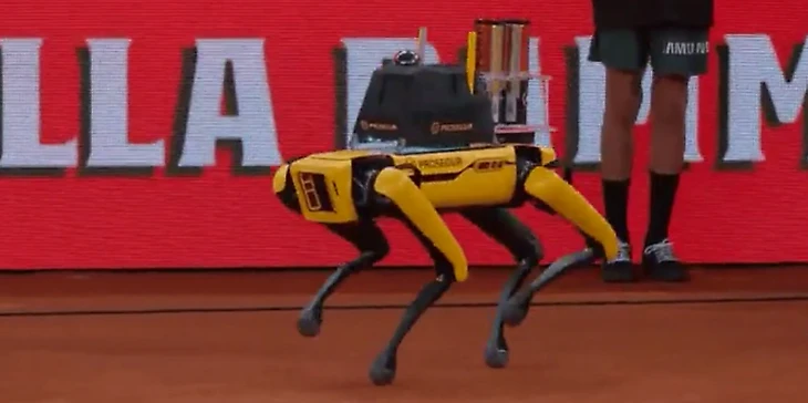 Новые мячи на корт выносит робопес Yellow.