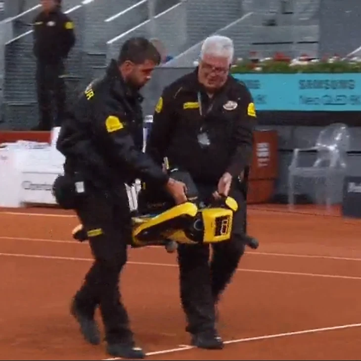 Во время одного из матчей этот робот сломался, и его пришлось унести с корта.