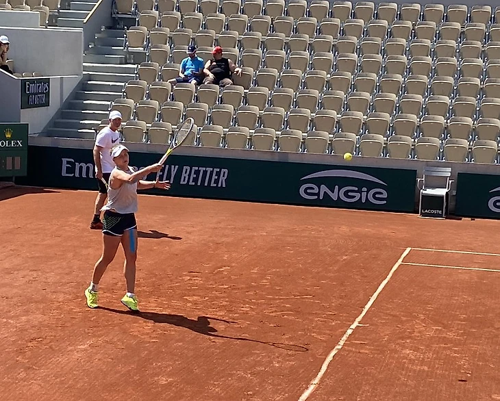 Действующая чемпионка «Ролан Гаррос» в одиночном и парном разряде Барбора Крейчикова приступила к тренировкам в Париже. Она играет с тейпом на правом локте и левом бедре.