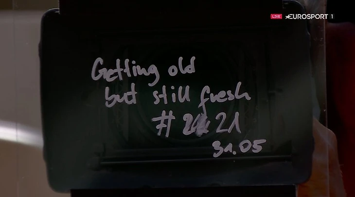 Уходя с корта, Швентек оставила автограф на камере: «Старею, но все еще свежая. #21». Изначально она написала, что ей 22, но потом исправила это, сказав: «Я забыла сколько мне лет».