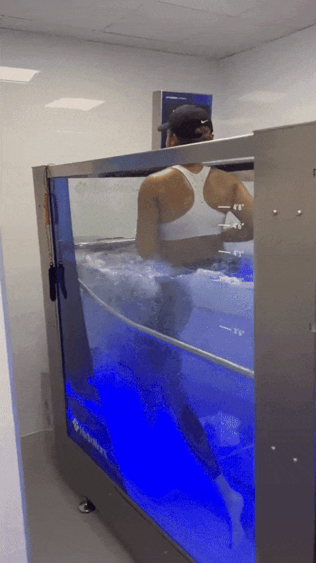«Это я бегу по подводной беговой дорожке, потому что ахилл все еще упрямится😬. Должно быть, я старею или что-то в этом роде».