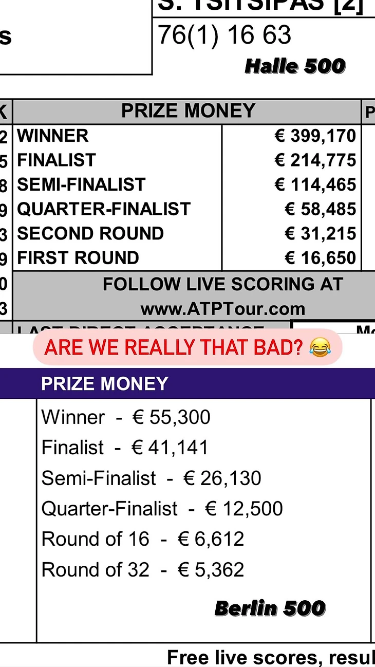 «Неужели мы настолько плохи? 😂» – написала Костюк, приложив скриншоты распределения призовых на турнирах ATP 500 в Галле и WTA 500 в Берлине.
