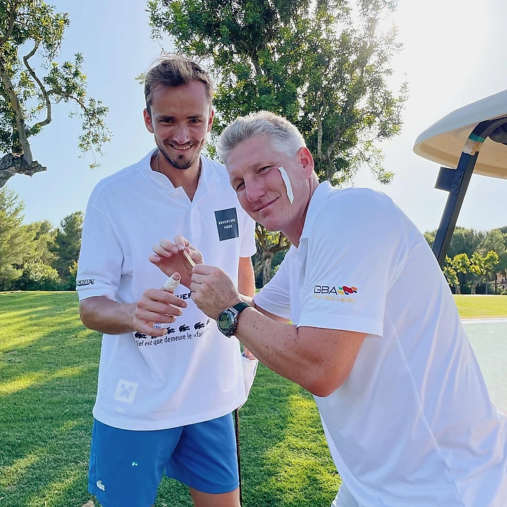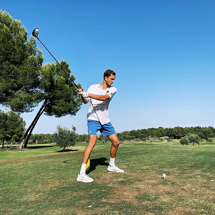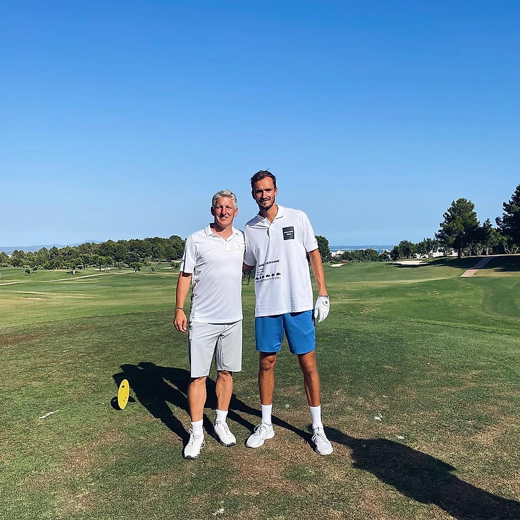 Даниил Медведев показал, как играет в гольф. Первая ракетка мира выложил фото c экс-футболистом «Баварии» и сборной Германии Бастианом Швайнштайгером.