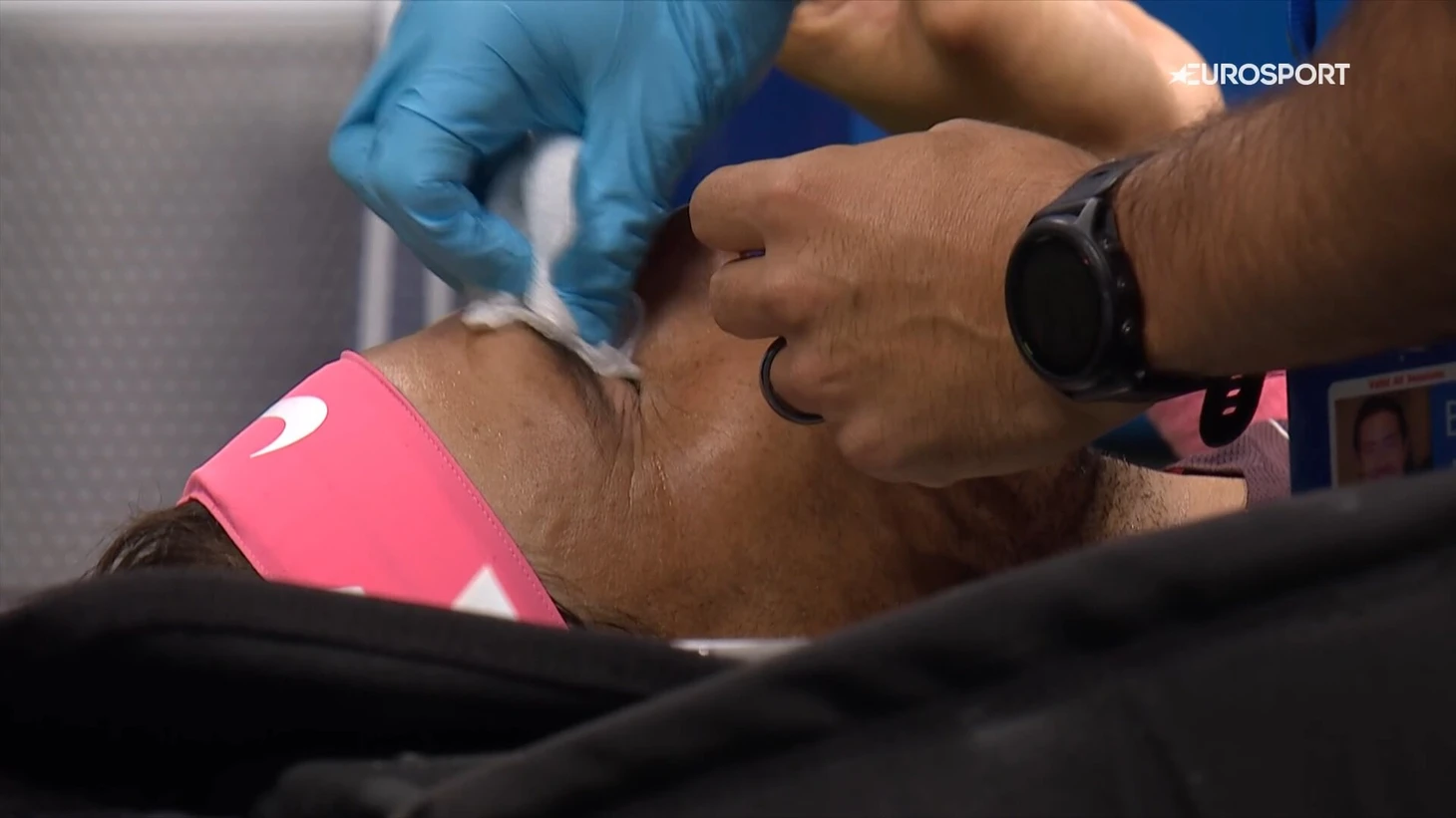 В четвертом сете Надаль пробил по мячу, после этого ракетка ударилась об корт и отскочила ему в лицо.
