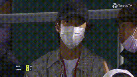Участник и вокалист группы BTS Ким Сокджин посетил матч второго круга турнира в Сеуле между Каспером Руудом и Николасом Харри.