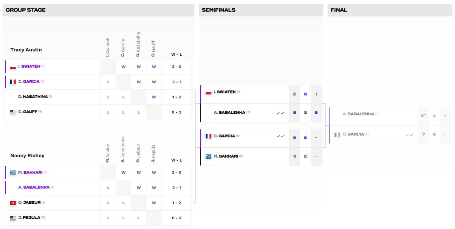 Чемпионкой стала Каролин Гарсия, обыгравшая в финале Арину Соболенко.