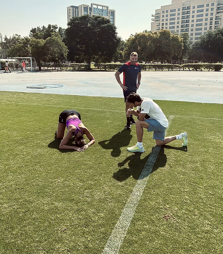 «Вторая неделя предсезонки завершена. Непростой период, упорный труд, выкладываюсь на 100% каждый день. Горжусь каждым маленьким шагом. Уже думаю о том, что будет дальше... ⏰💪🥵🫣😍🎾🏃♀️🎢