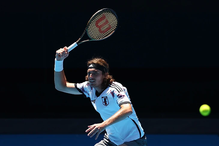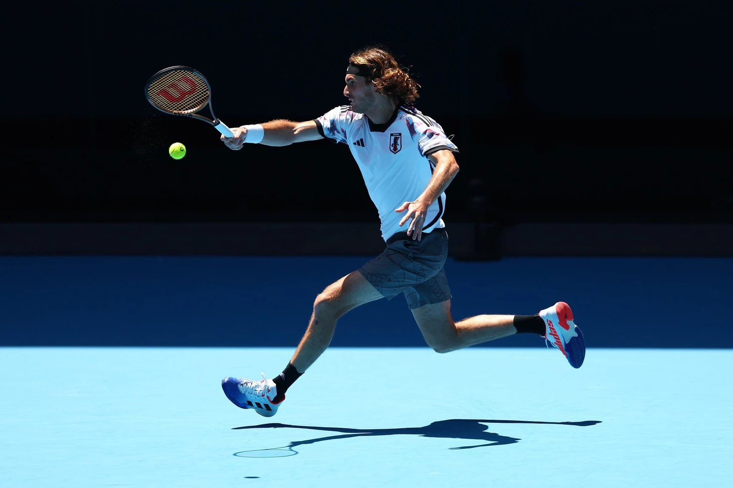 Стефанос Циципас потренировался на Australian Open в джерси сборной Японии по футболу.
