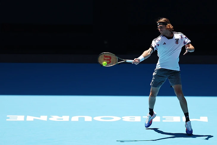 Циципас потренировался на Australian Open в джерси сборной Японии по футболу: «Она символизирует связь спорта с древним духом японского воина»