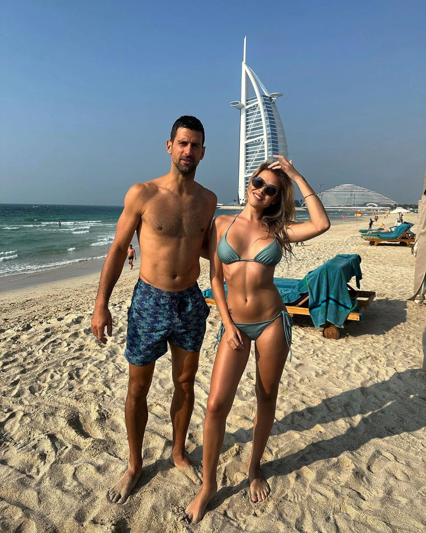 Первая ракетка мира Новак Джокович в пятницу утром ходил на пляж в Дубае. В интернете появилось его фото с девушкой в бикини.